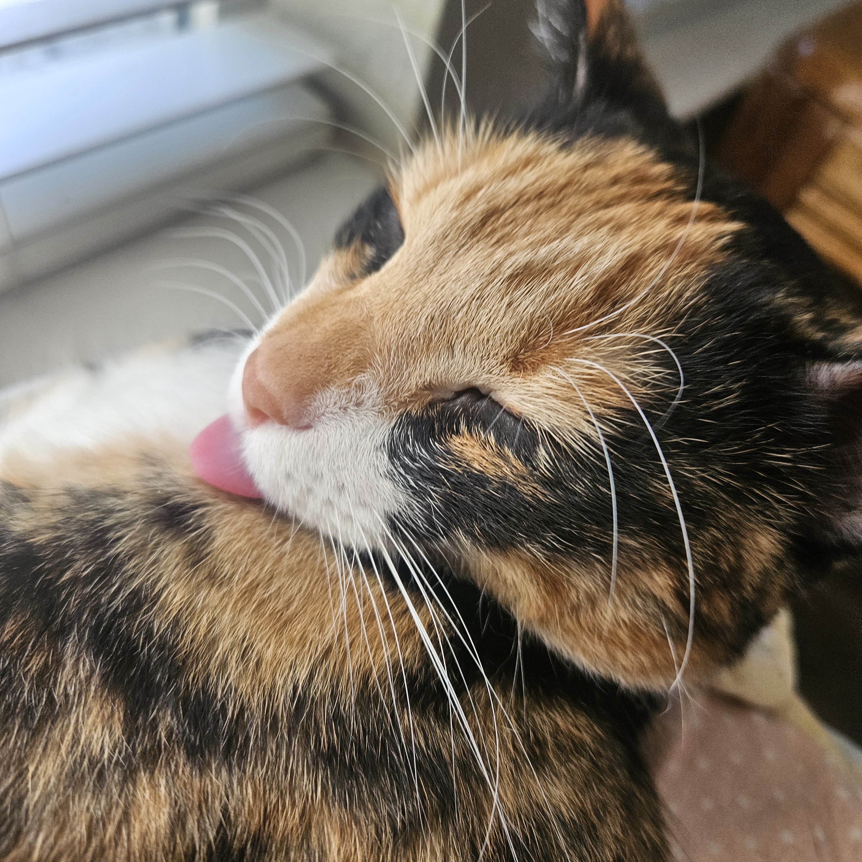 Furbabies will always be in my favorites, but this kitten and her sister have definitely got us wrapped around their little toes! This is Alice and she fell asleep with her tongue out.