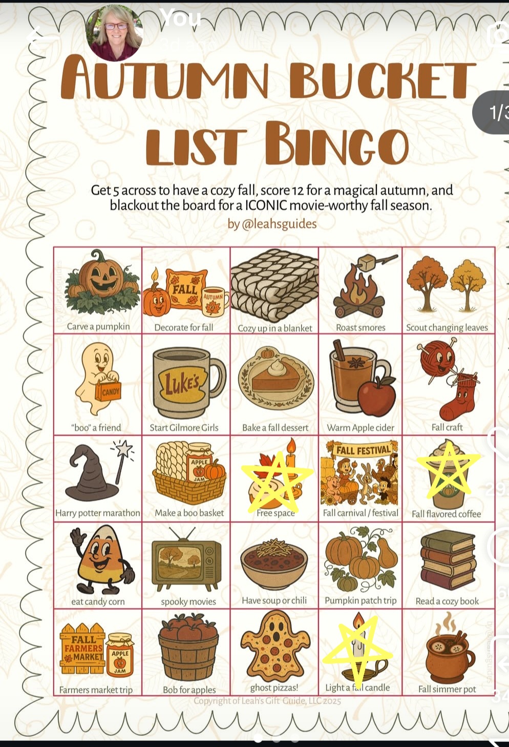 I challenged some family and friends to a little Instagram Autumn Bingo, and I think it’s going to be so much fun! I’ve already starred three things I’ve completed, and now I’m on the lookout for more opportunities to cross items off the board.