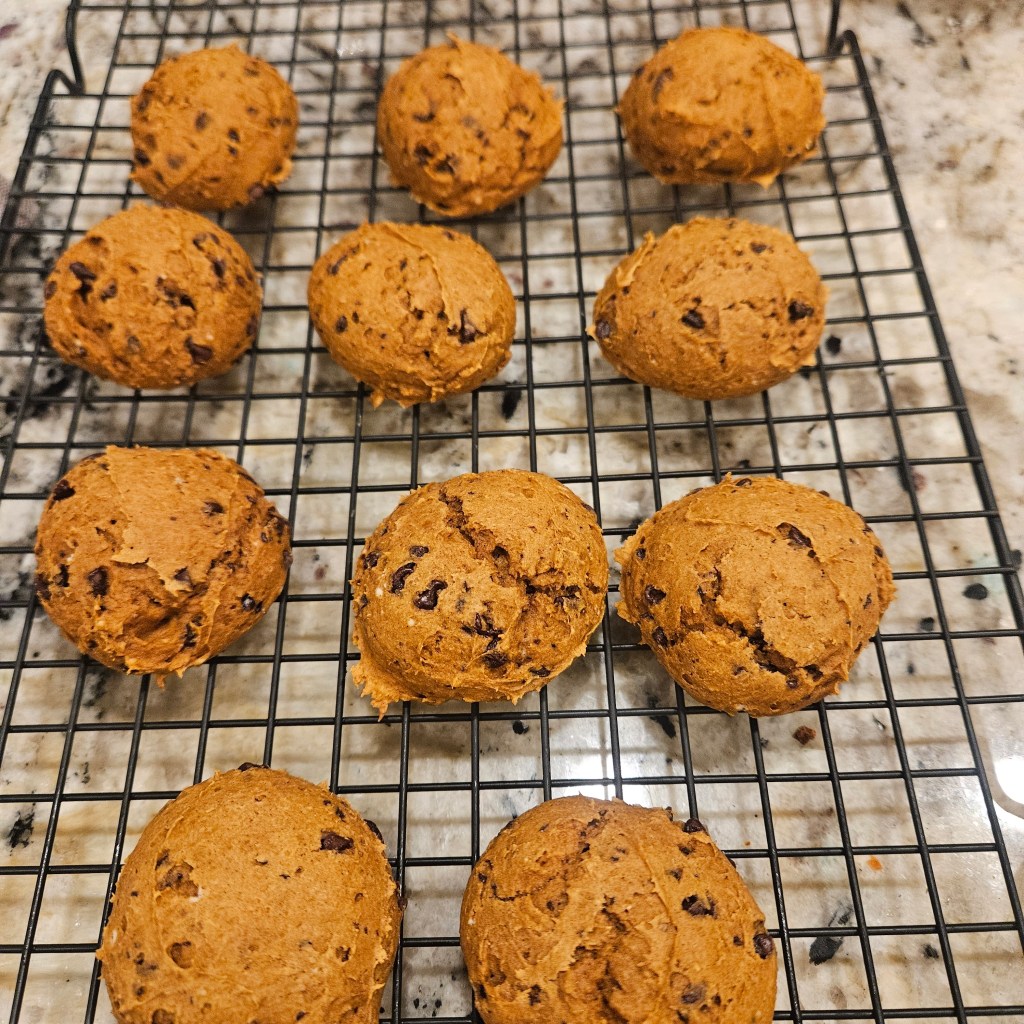 Boxed spiced cake mix, a can of pumpkin and some chocolate chips. Yum. And the smell is amazing!