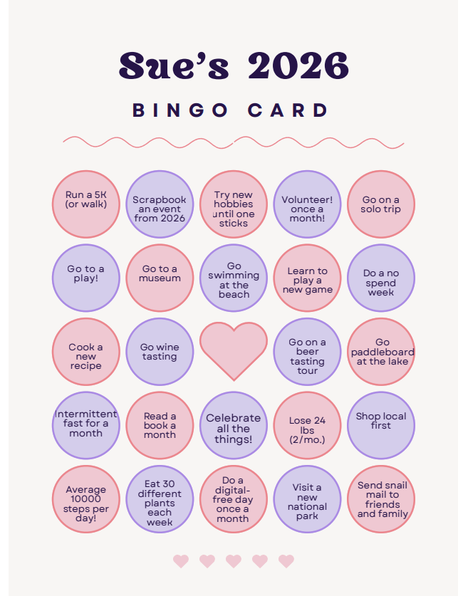 I didn’t do resolutions this year. I made a Bingo card instead.